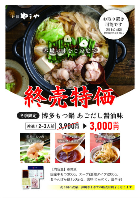 冷凍 博多もつ鍋セット --- 3,900円→3,000円
